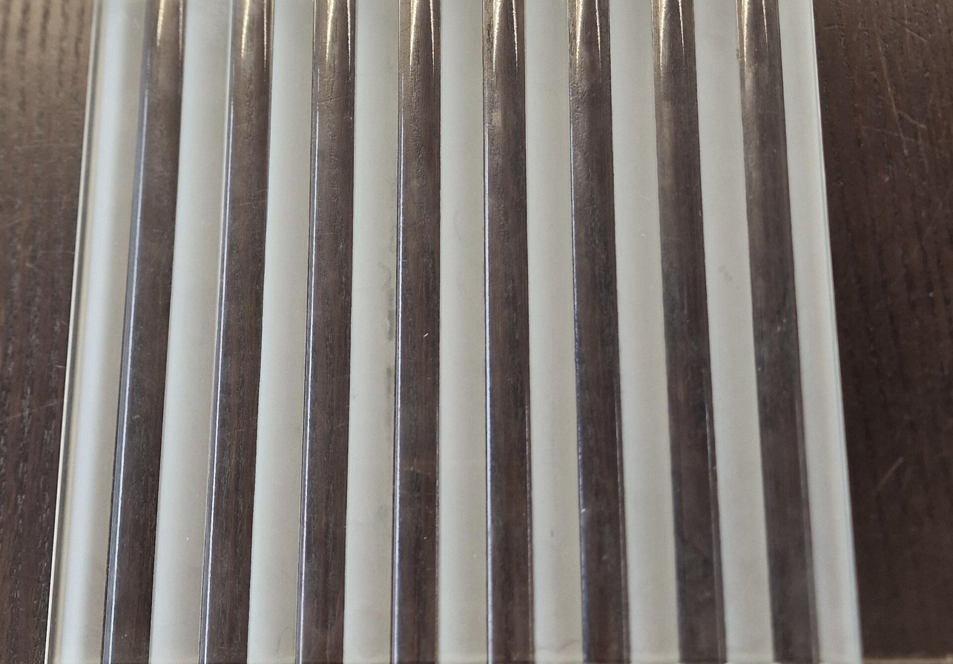 Het lineaire patroon van dit glas springt meteen in het oog en geeft het glas een fraaie textuur. Deze lijnen, die als kanalen of groeven over het glas lopen, zorgen ervoor dat licht op een bijzondere manier breekt en zich verspreidt. Dit geeft ruimtes een warme en uitnodigende sfeer, waardoor ze een geheel eigen uitstraling krijgen. Tegelijkertijd voorziet dit patroon in een bepaalde mate van privacy, doordat het zicht door het glas beperkt wordt, zónder het daglicht volledig te blokkeren.