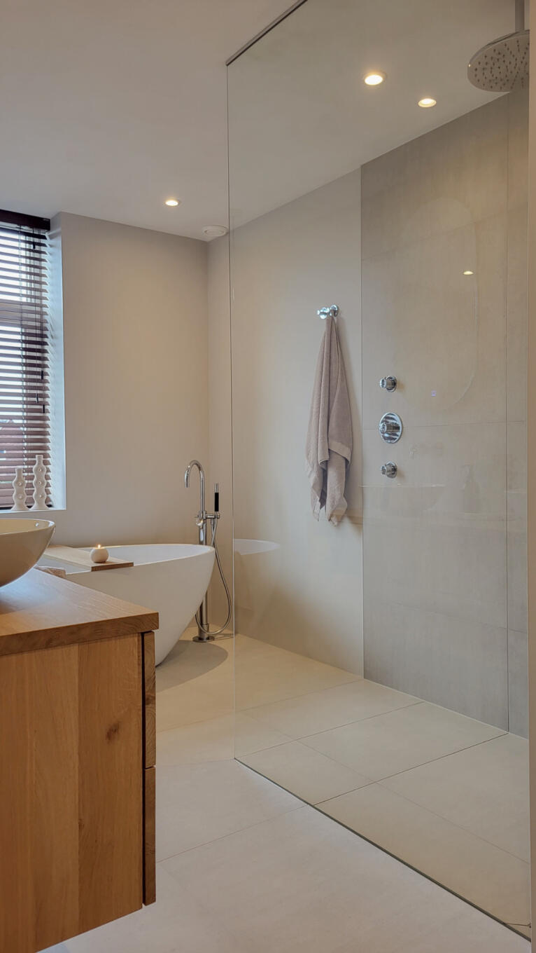 - Verlichtingselementen zoals inbouwspots of wandlampen om de douche wanden mooi uit te lichten.