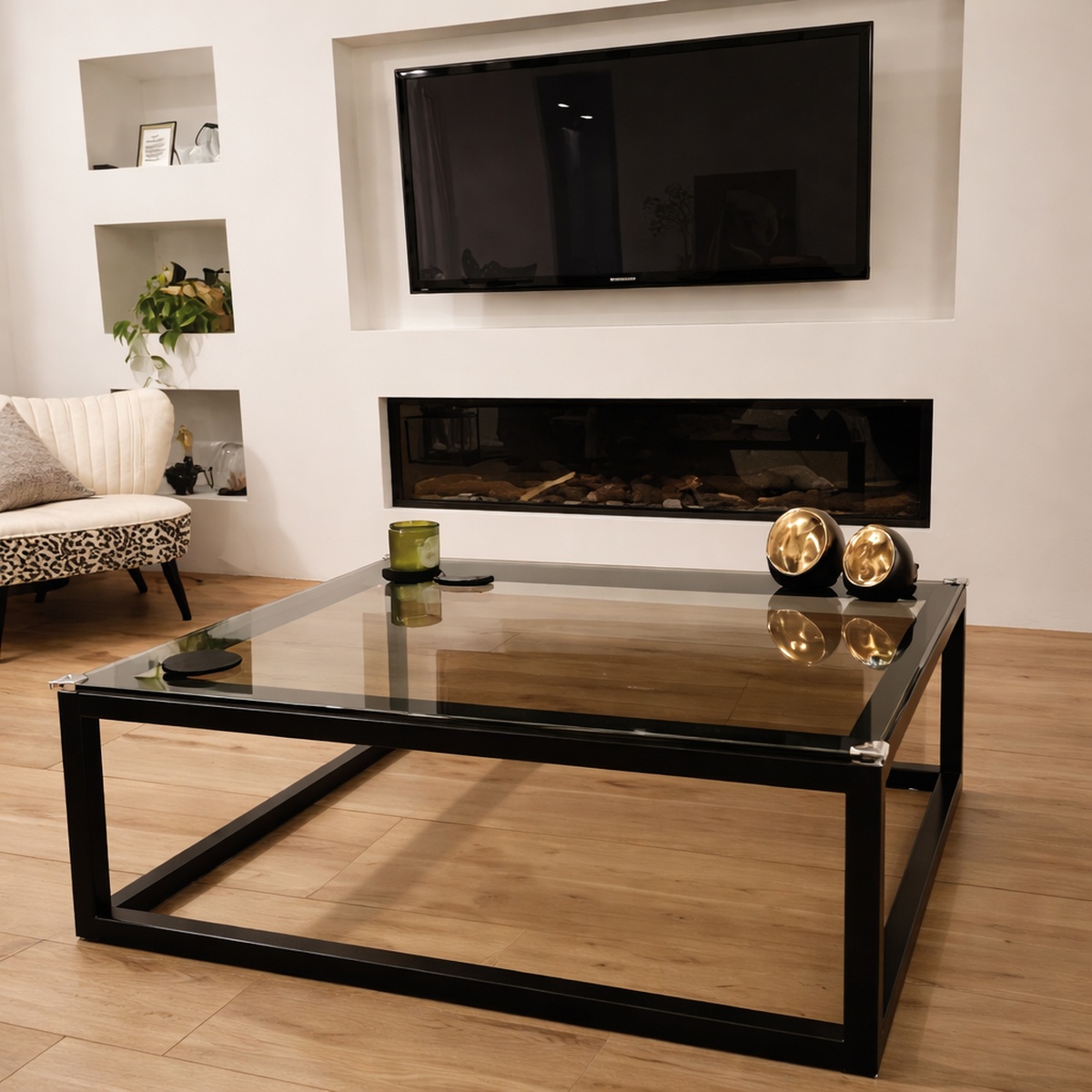 Om te beginnen heb je een geschikt onderstel nodig, dat natuurlijk wel robuust genoeg moet zijn om het gewicht van de glasplaat en de spullen die je op de glazen salontafel wilt zetten te dragen. Afhankelijk van de gewenste uitstraling kun je denken aan een onderstel van metaal, hout of beton. Het is ook mogelijk om het houten tafelblad van een bestaande salontafel te vervangen door een glasplaat.