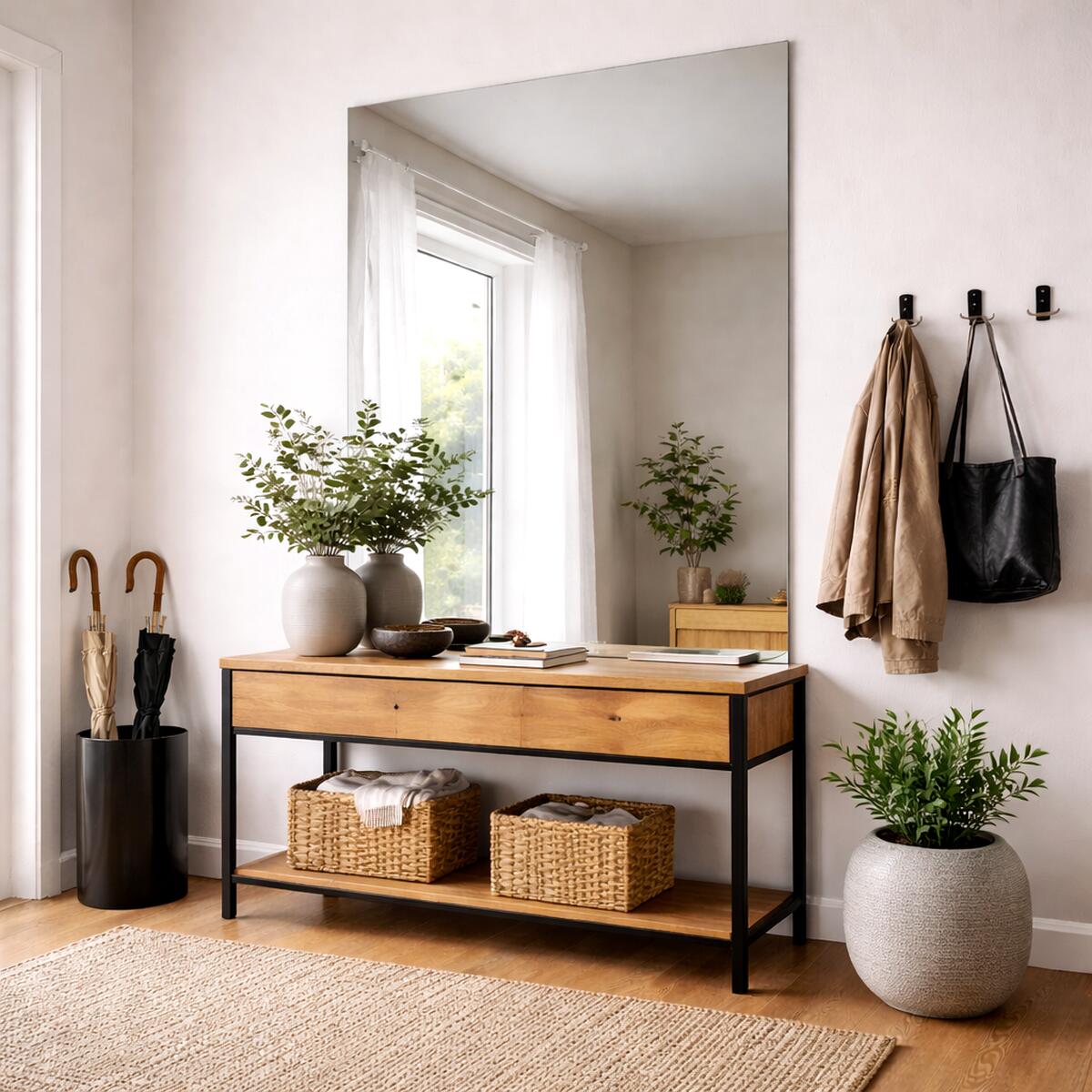 Een spiegel in de hal met geslepen randen; een strak resultaat