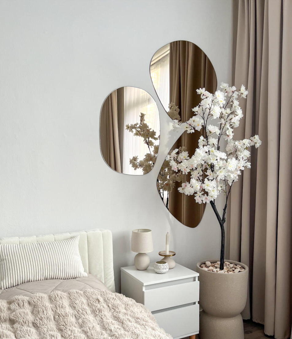 Wat een Japandi spiegel echt bijzonder maakt, zijn de organische vormen. Deze spiegels hebben geen scherpe hoeken of rechte lijnen. In plaats daarvan zie je vloeiende rondingen, ovale vormen of asymmetrische contouren. Juist die zachte vormen maken een ruimte rustiger. In een tijd waarin veel interieurs strak en recht zijn ingericht, zorgt een organisch gevormde spiegel voor het doorbreken van die strakke lijnen. Dat maakt je interieur meer uitnodigend. De kracht van een Japandi spiegel zit in de eenvoud van de vorm en in het effect dat die vorm heeft op de hele ruimte.