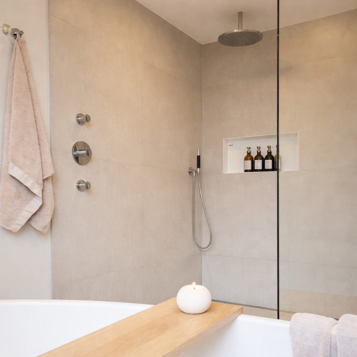 Een douchewand van nanocoating glas, ook wel timeless glas genoemd