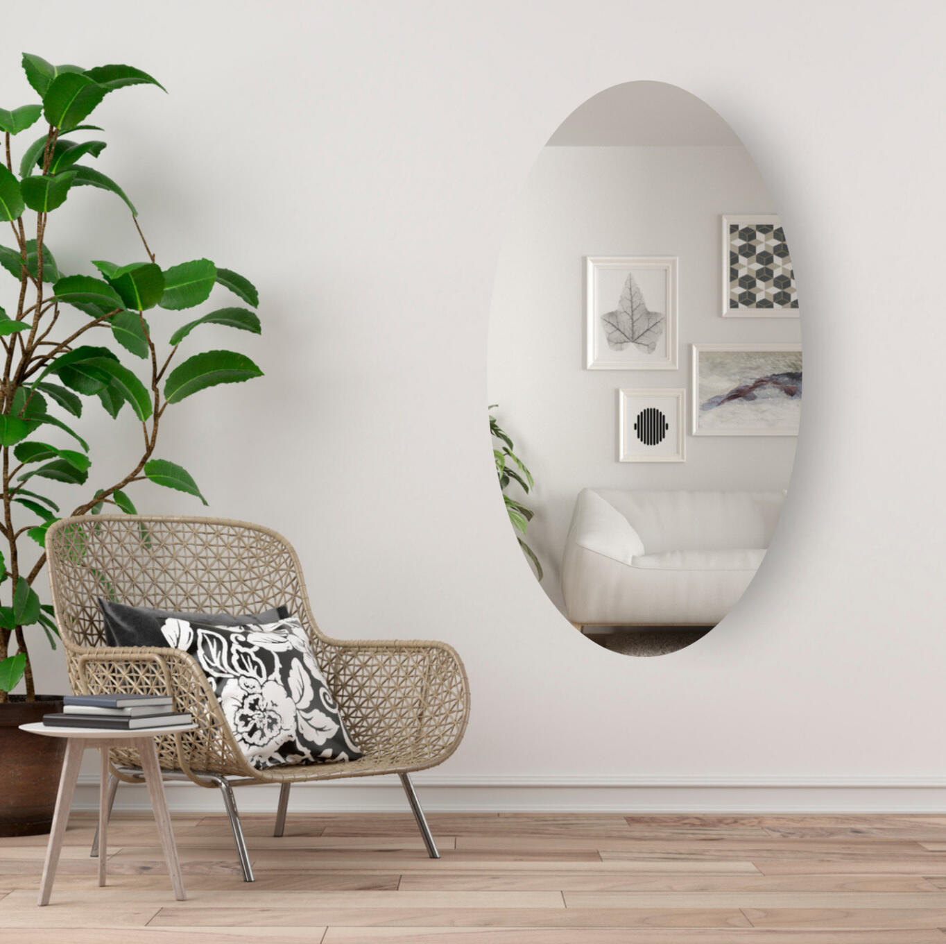 Een ovale spiegel brengt direct een gevoel van elegantie en zachtheid in een ruimte. De afgeronde hoeken zorgen voor een subtielere uitstraling die past bij verschillende interieurstijlen. In een modern interieur vormt een ovale spiegel een stijlvol contrast met strakke lijnen en harde materialen. In een klassiek of romantisch interieur sluit de ovalen vorm van de spiegel juist naadloos aan op de ‘zachte’, decoratieve elementen.