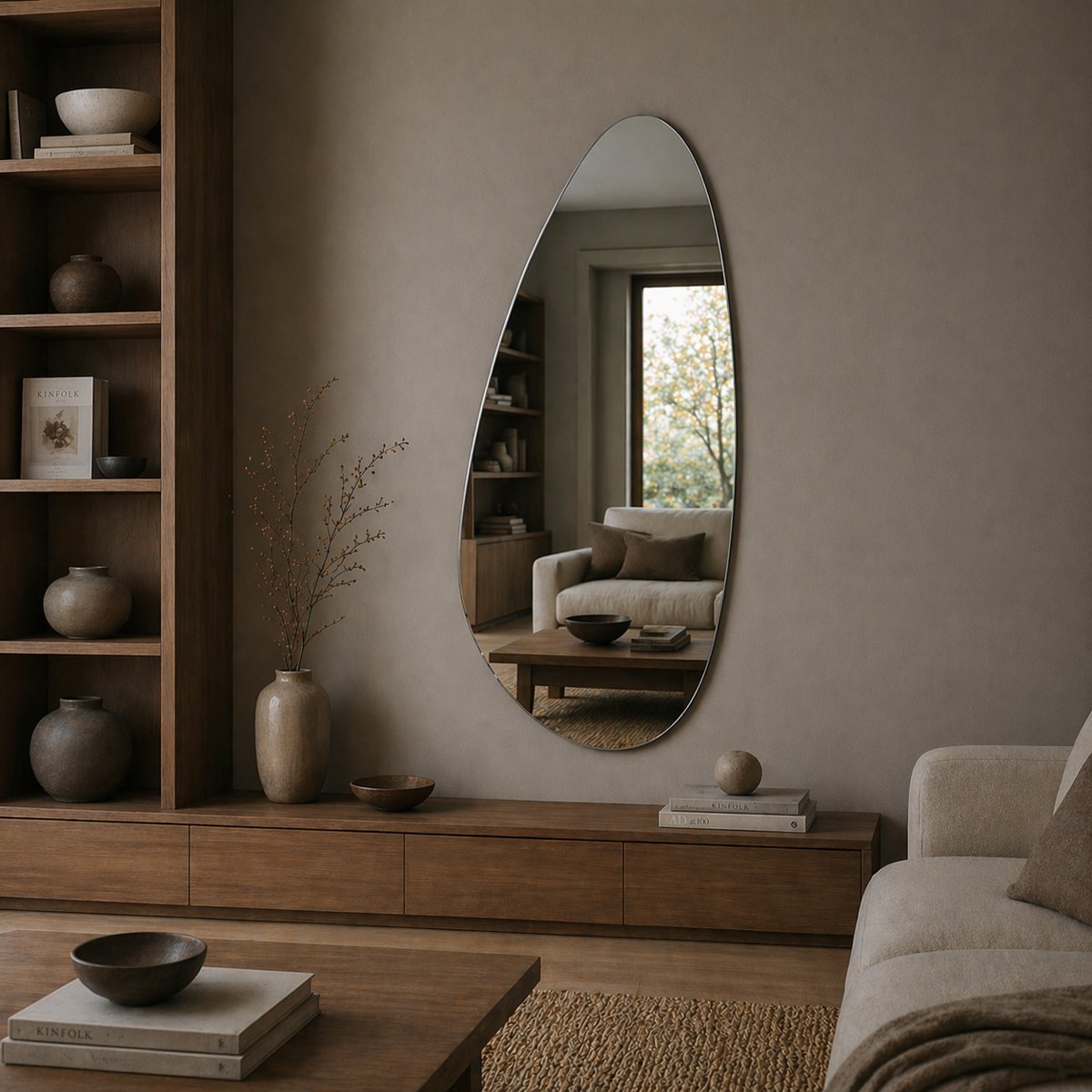 Een organische spiegel is niet alleen een stijlkeuze, maar ook een slimme manier om je interieur meer diepte en dynamiek te geven. Door de asymmetrische vorm ontstaat er een speels effect aan de wand, waardoor een ruimte minder statisch aanvoelt.