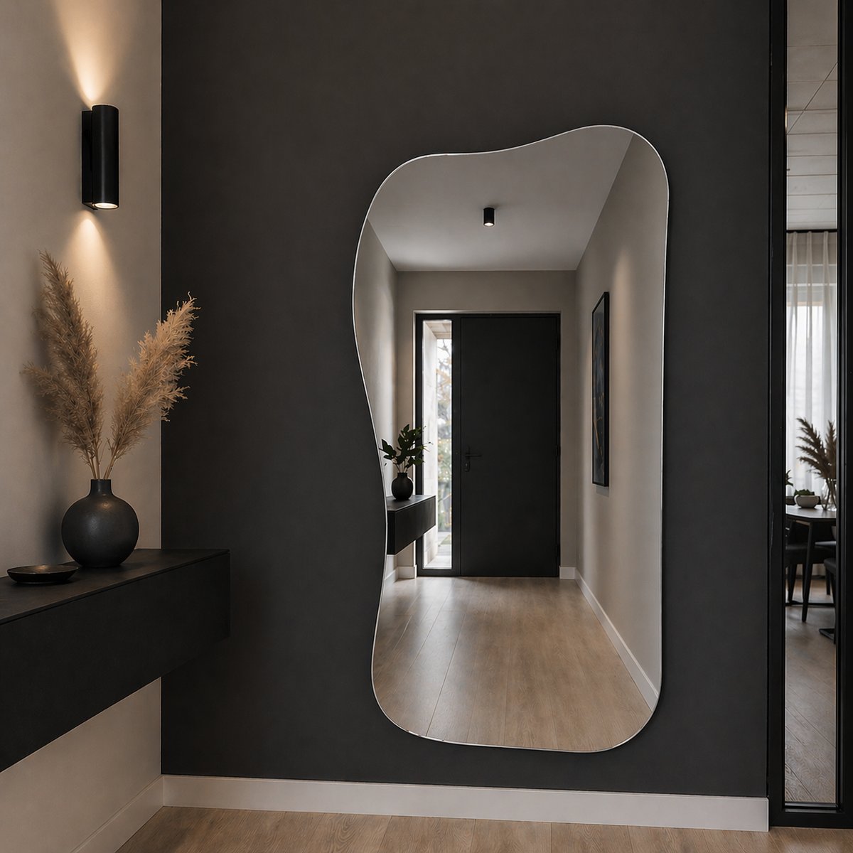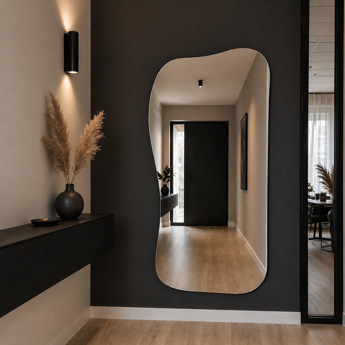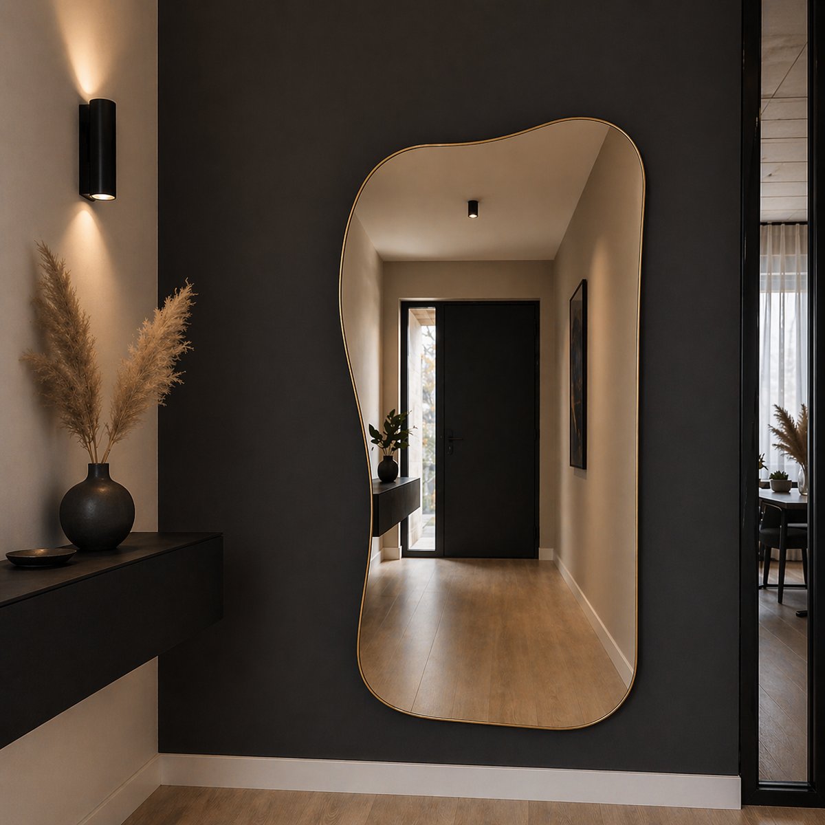 Daarnaast zorgen organische vormen voor een zachtere uitstraling. Waar rechte vormen soms hard kunnen overkomen, brengen vloeiende lijnen juist rust. Dat maakt dit type spiegel bijzonder geschikt voor woonstijlen zoals Japandi, modern minimalistisch en hotel chique.