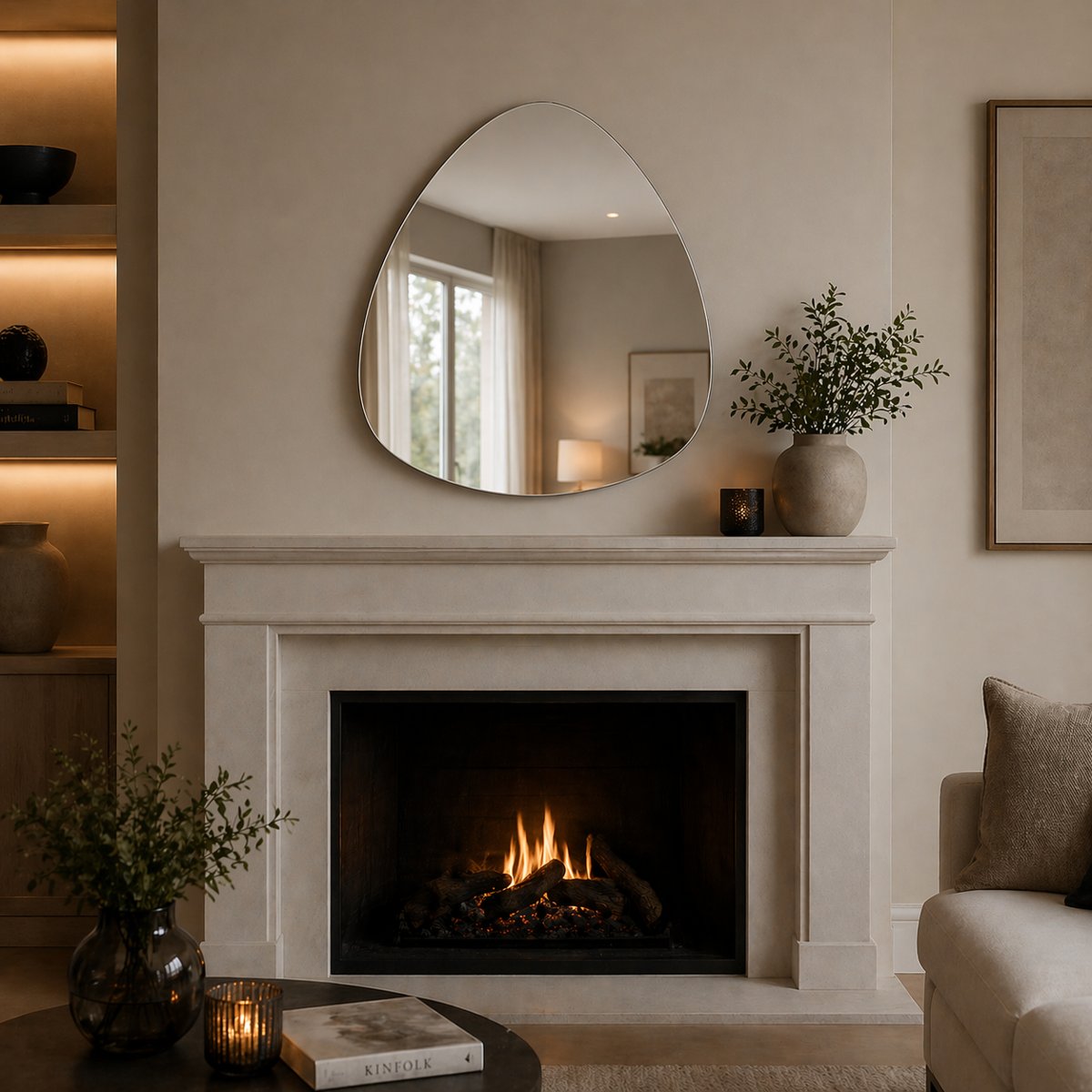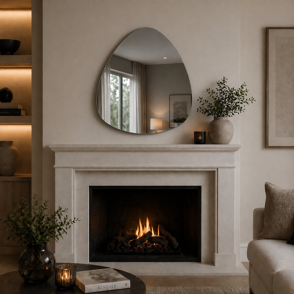 Waar strakke lijnen soms hard kunnen ogen, brengt een organische spiegel juist zachtheid. De vorm zorgt voor een subtiele beweging aan de wand, waardoor het geheel minder statisch wordt. Hierdoor past deze spiegel perfect in interieurs waarin balans, rust en eenvoud centraal staan.
