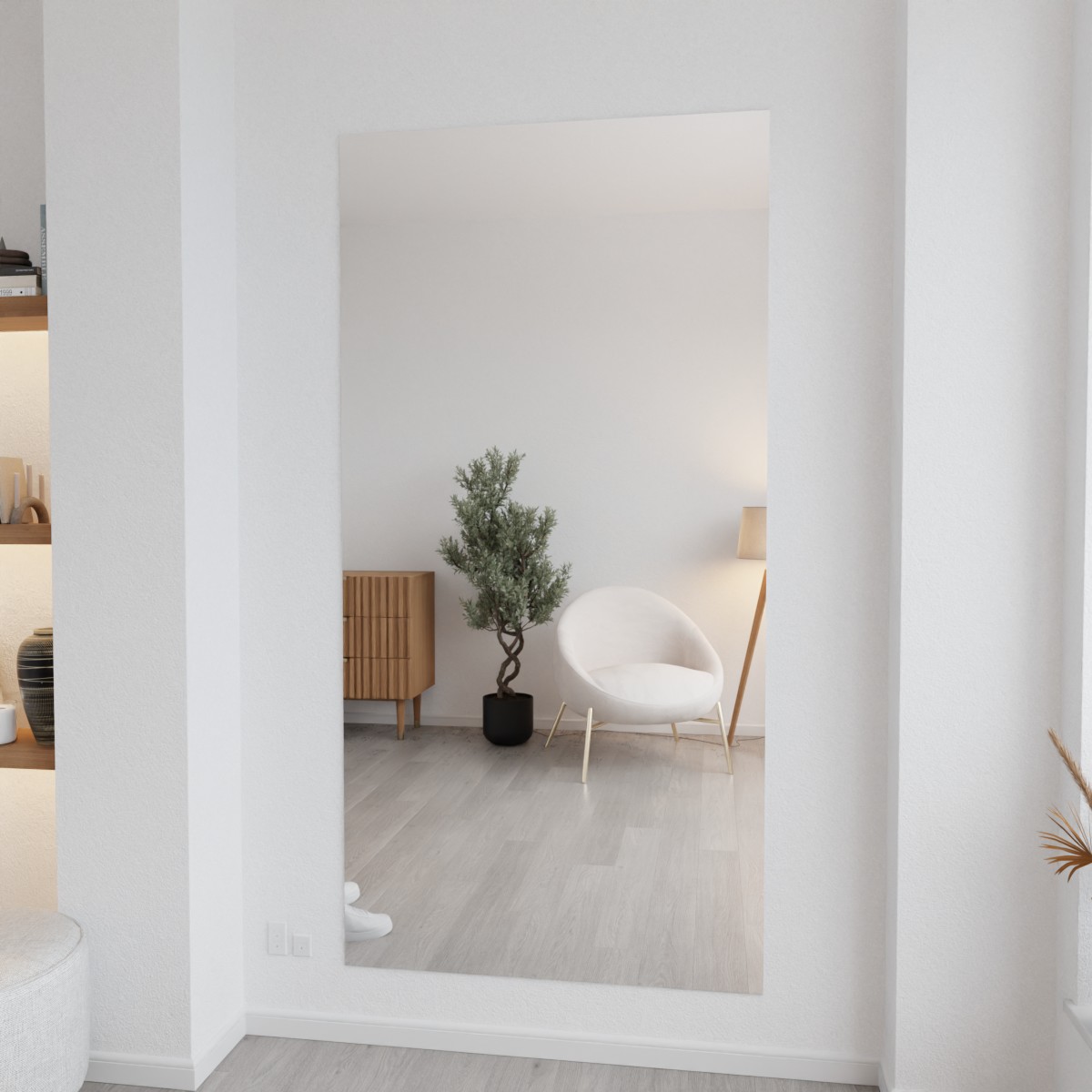 Je wist waarschijnlijk al dat strategisch geplaatste spiegels een ruimte groter kunnen laten lijken dan hij in werkelijkheid is; de weerspiegeling zorgt voor een optische illusie. Met een spiegel zonder lijst wordt dat ruimtelijke effect nog eens extra versterkt.