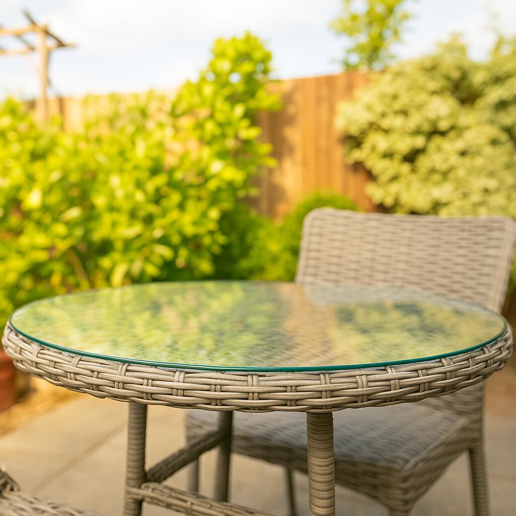 Een dikker tafelblad van 10 mm biedt extra stevigheid en stabiliteit. Deze dikte zorgt ervoor dat het tafelblad goed bestand is tegen de wisselende omstandigheden buiten, zoals wind en temperatuurverschillen. Het maakt het blad ook beter bestand tegen krassen en slijtage, wat belangrijk is Bovendien hebben dikkere tafelbladen een robuuste en luxe uitstraling, wat een mooie toevoeging is aan de stijl van een buitenruimte. Voor kleinere tafels is 8 mm vaak voldoende, waardoor de tafel door het glas niet pompeus wordt.