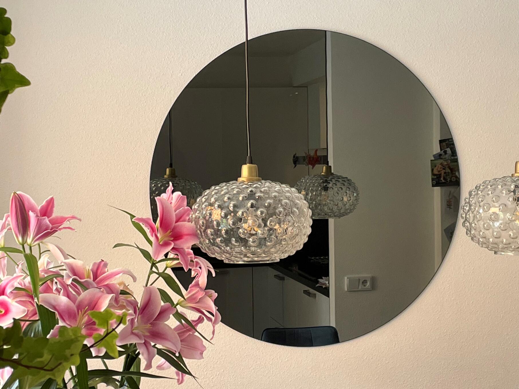 Of je nu een ruimte optisch wilt vergroten, een stijlvol accent wilt aanbrengen of simpelweg op zoek bent naar een originele wanddecoratie – een ronde spiegel in blank, brons of grijs glas is altijd een goede keuze.